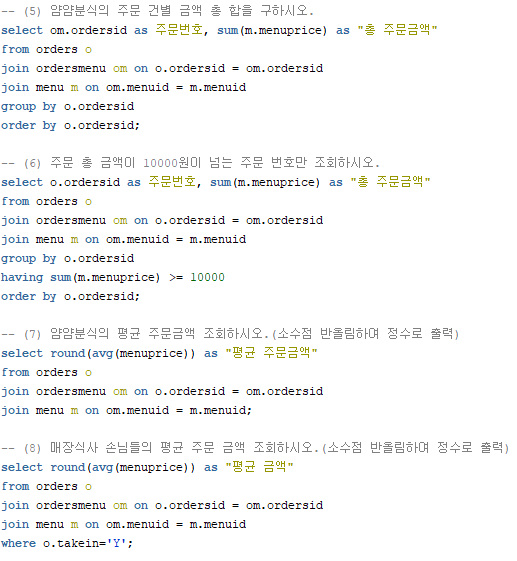 -- 8-(1) ordersmenu테이블에서는 주문메뉴 번호, 주문번호, 메뉴 번호를 알 수 있는 데이터가 들어가있으며,