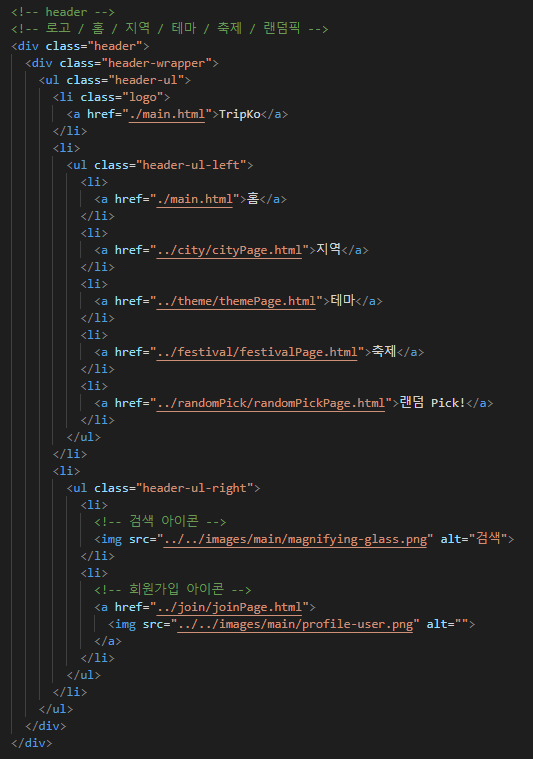 로고와 홈의 링크는 각 페이지마다 다시 path를 설정해주어야 한다. (폴더구조 때문)