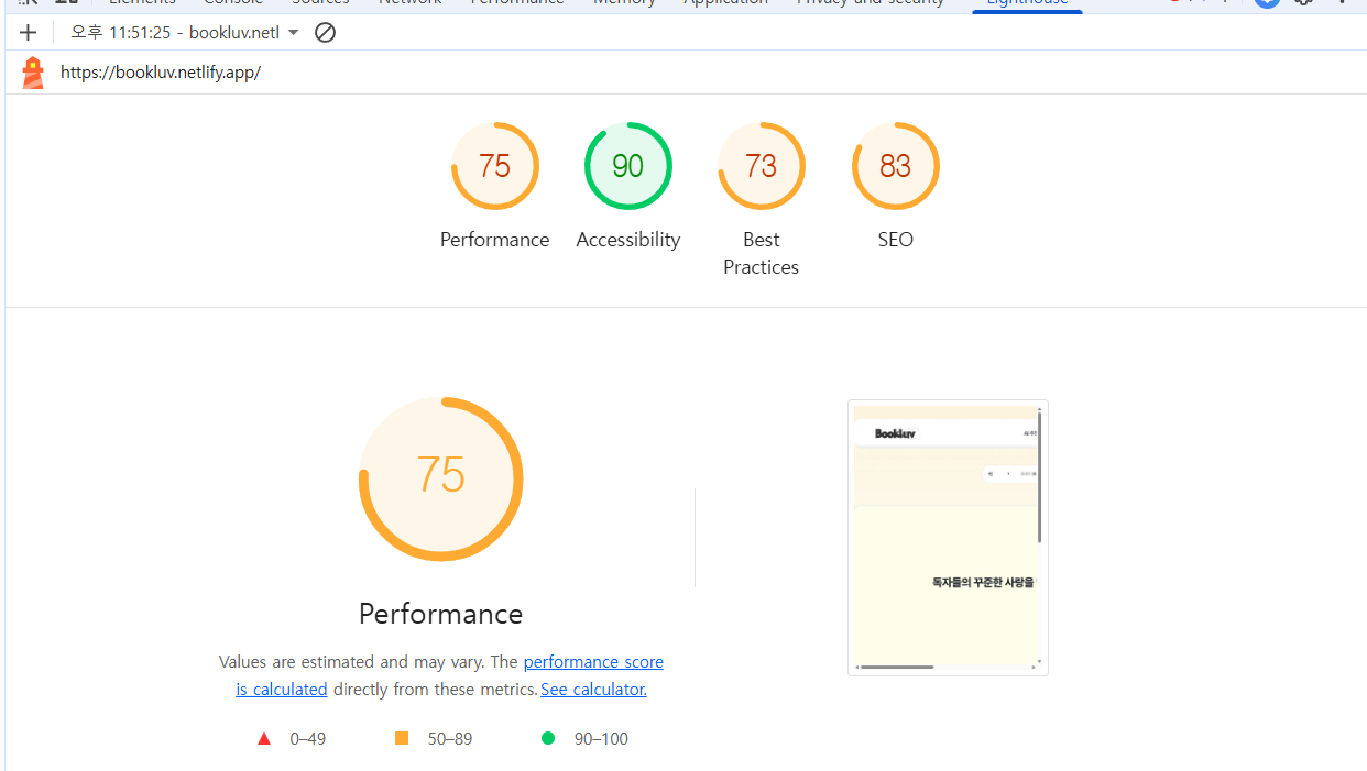 💡Lighthouse 성능 측정 결과