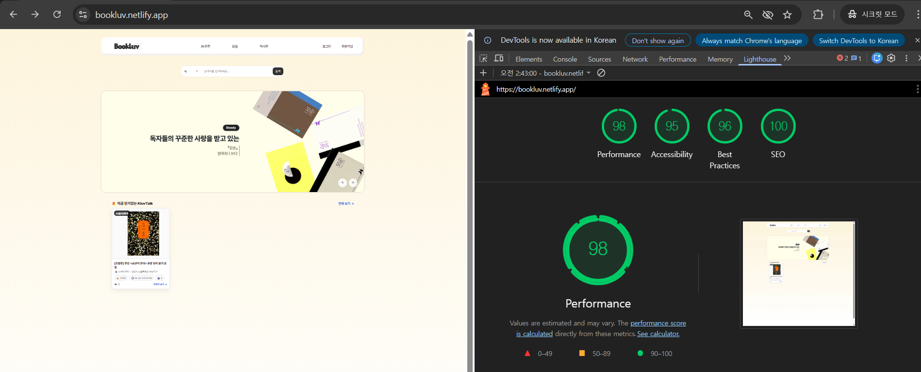 performance 점수가 갑자기 98로 나왓습니다..!!!!