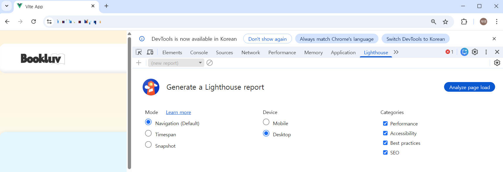 - device: desktop 으로 해두고 analyze page load 클릭!