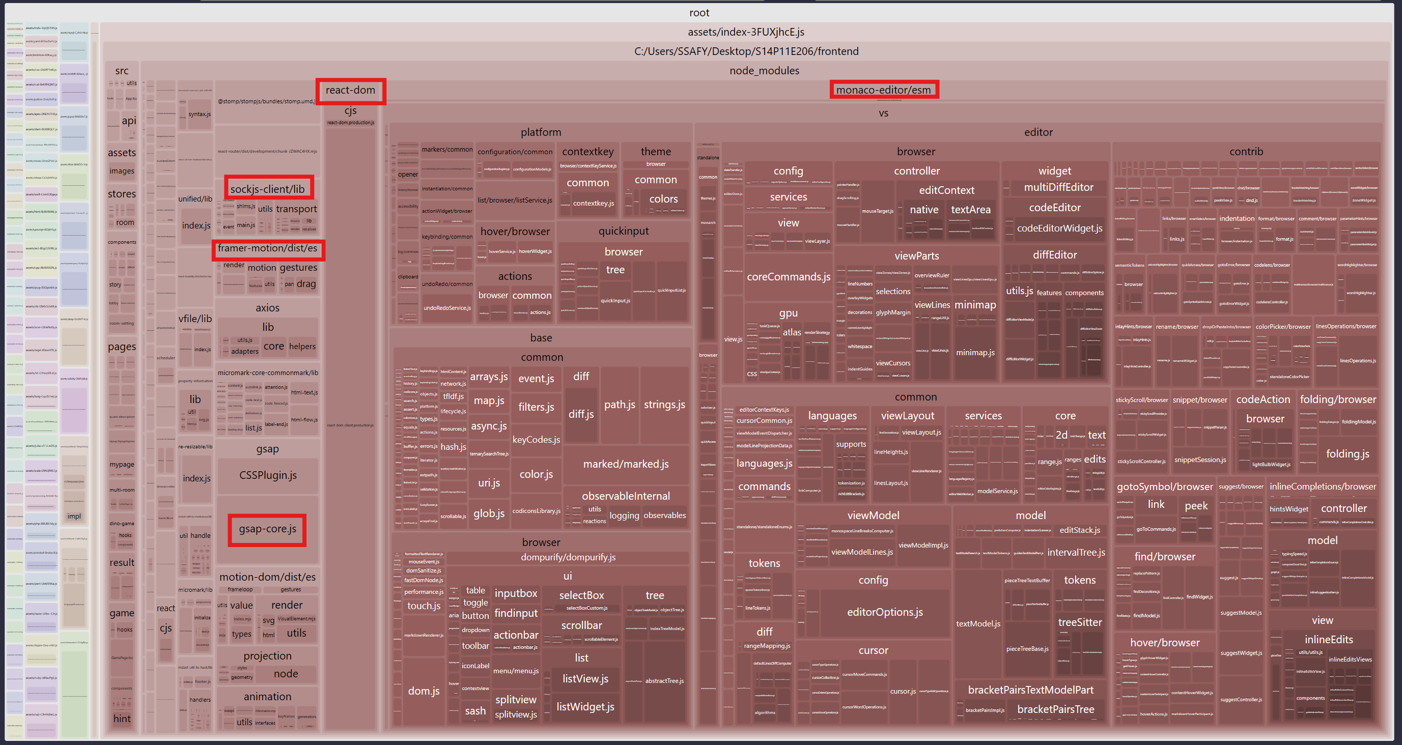 일단 게임화면에서 사용하는 monaco-editor가 많이 많이 컸고,