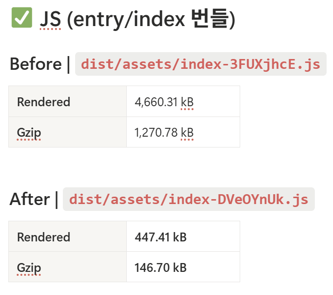결론: 초기 진입에 필요한 JS가 약 1/10 수준으로 감소.