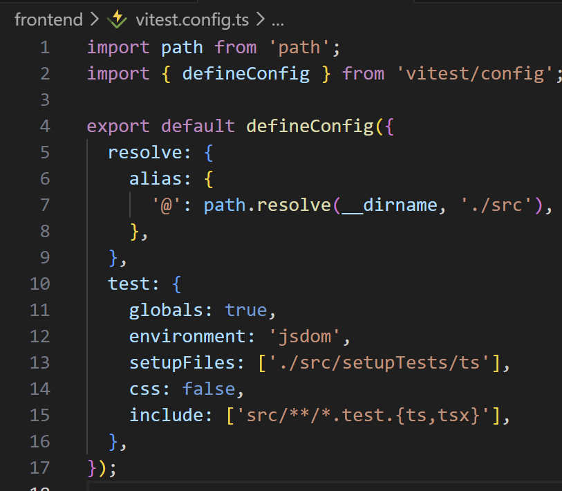 frontend/ 루트에 vitest.config.ts 파일을 생성해보겠습니다!