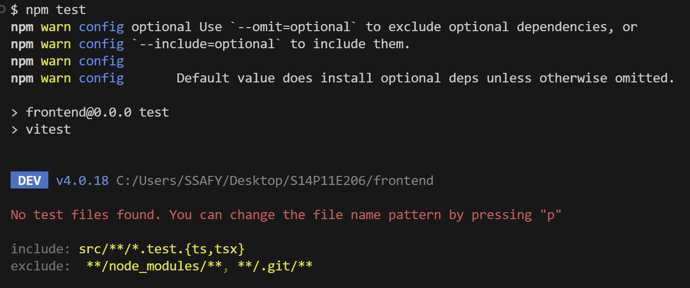 이 명령어 중 npm test, npm run test:run까지 실행해보겠습니다.
