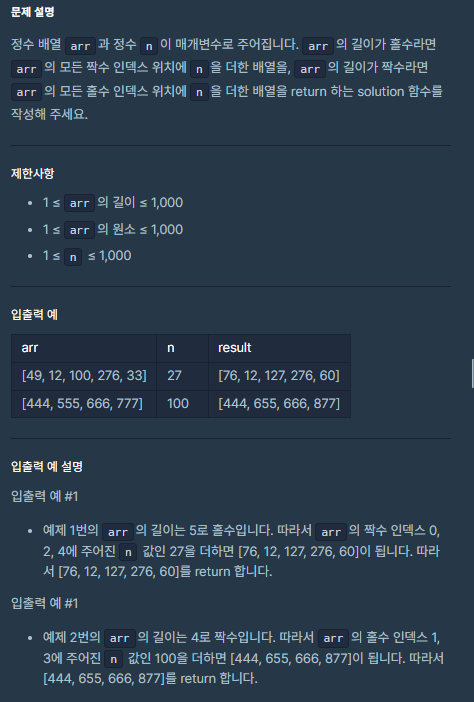 >> 배열 arr에서 짝수 인덱스 위치에 있는 수마다 n씩 더해서 배열 return